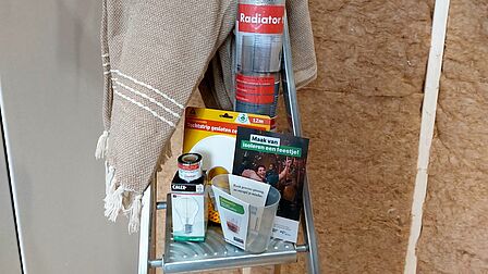 - Er kan een keuze gemaakt worden uit: Radiatorfolie, tochtstrip, eetmaatjes, douchetimer, ledlamp.